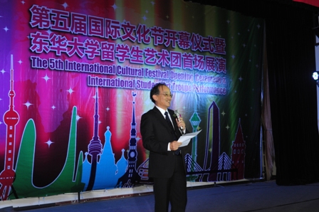 1029日,第五届国际文化节在延安路校区举行。宋立群副校长出席开幕式并讲话,哥伦比亚、巴基斯坦、厄瓜多尔、泰国、古巴、葡萄牙等国驻上海领事馆代表、留学生校友代表、教师代表等也应邀参加了系列活动。