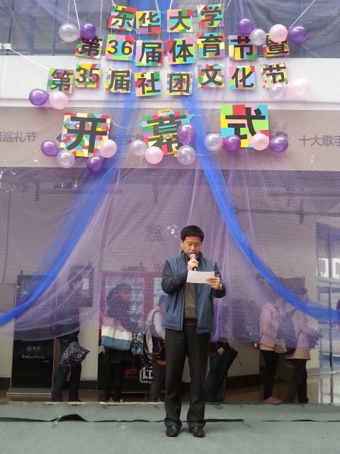 325日,学校第36届体育节暨第35届社团文化节在松江校区开幕。校团委书记张晓冬,体育部副主任朱江华,校学生会秘书长封华老师,体育部教师张拥军、熊涛、王喆、钟茵菲,以及学生代表参加活动。裁判员代表朱江华和运动员代表、机械学院李博厚同学在开幕式上宣誓,并一同从体育节吉祥物“火焰马”手中接过体育节会旗。