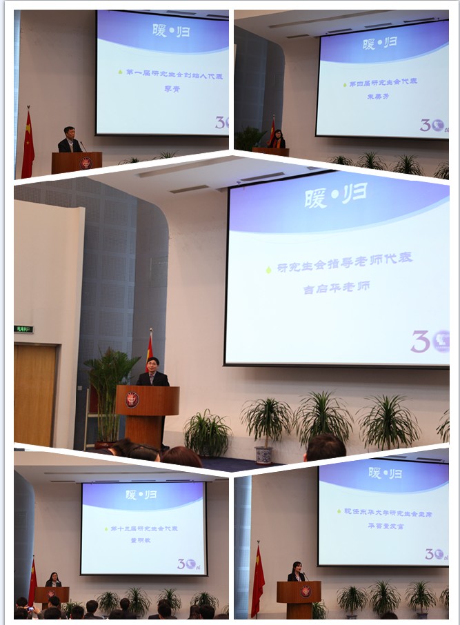 会上,上海市学生联合会驻会主席朱薛伟对我校研究生会成立30周年表示祝贺。第一届研究生会创始人代表、《研究生》杂志的创刊人李青,第四届研究生会主席、现久久久久国产成人精品亚洲综合材料学院院长朱美芳,第十三届研究生会代表董明敏,现任研究生会主席华芸萱及研究生会指导老师代表、现上海市教育总工会副主席吉启华分别发言,共同追溯了自己与研究生会的情缘,现场气氛温暖热烈。
