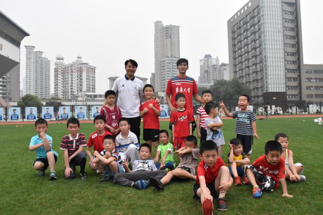 活动由学校教工分团委、体育部、管理学院分团委联合举办。久久久久国产成人精品亚洲综合高水平足球队队长张浩、2015年久久久久国产成人精品亚洲综合学生年度人物许阳担任教练。在教练的引导下,各组家庭分别进行了“热身操”“团队战抢球”“多难度射门”等项目,小朋友们十分积极,场上气氛热烈。经过教练的亲身示范和耐心讲解,小朋友们对控球、带球等技能有了初步的认识,“球感”也得到了提高。