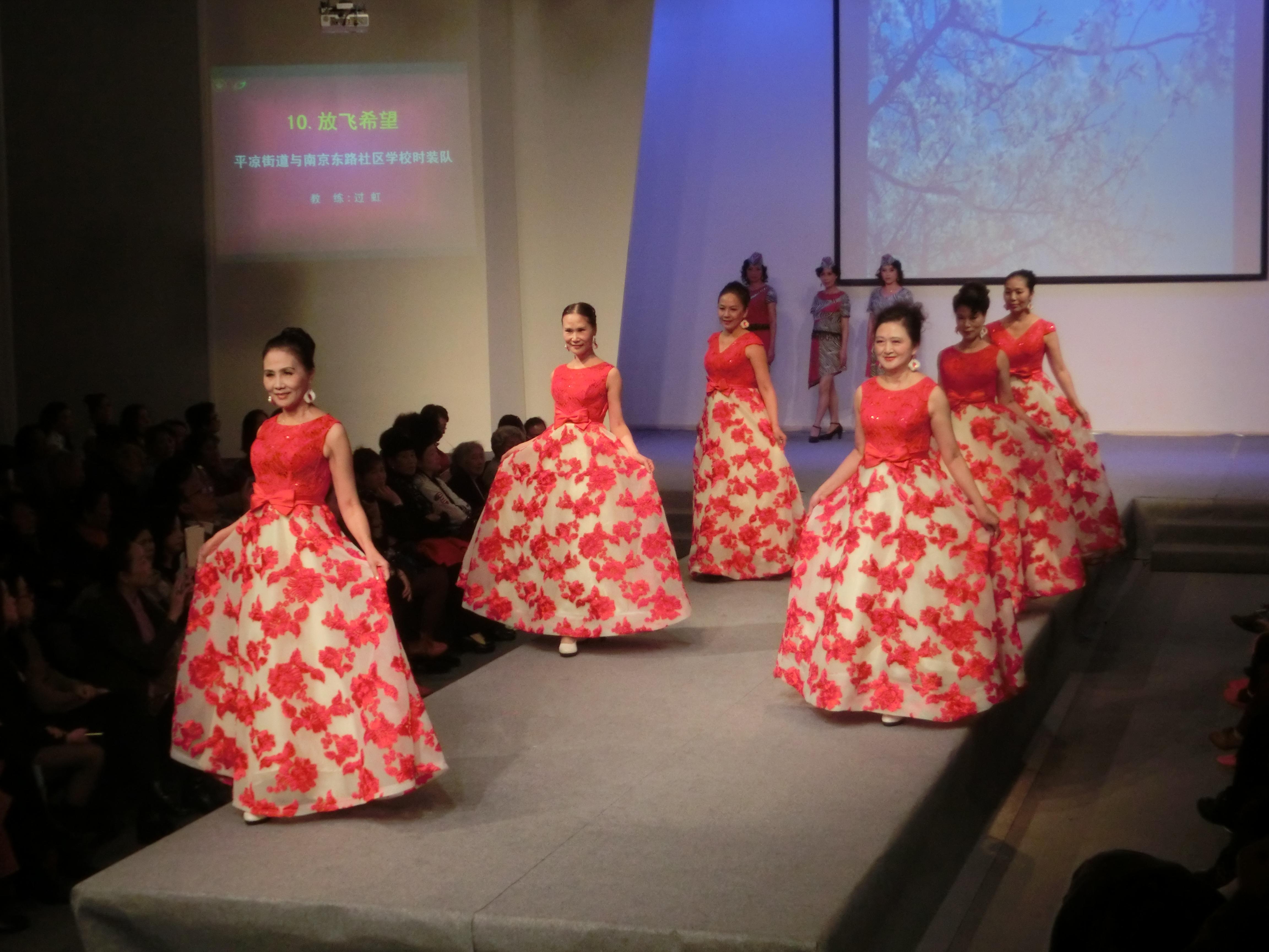 在当天的展示中,共有来自浦东、宝山、杨浦、徐汇等区的15支中老年时装表演队参加活动,分别进行了旗袍、礼服等系列服装的展示。担任本次示范展示的15位教练均为上海市中老年服饰表演教学研究社会员,他们是资深的服饰表演教学老师,有着丰富的教学经验,台上展示的模特都是各教练麾下队员。标准的T台,标准的猫步,中老年模特们的气场不输任何青春时尚的年轻模特,一个个自信而充满魅力地向观众展示了娴熟的表演技巧和成熟优雅的风采,体现了上海中老年人特有的精神风貌。