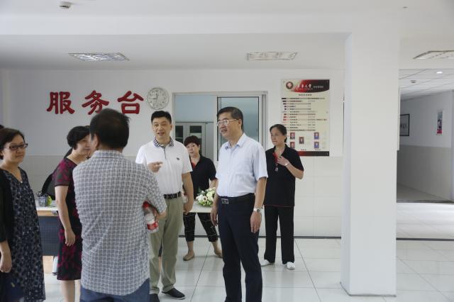 校党委书记朱民察看延安路校区新学期开学准备工作