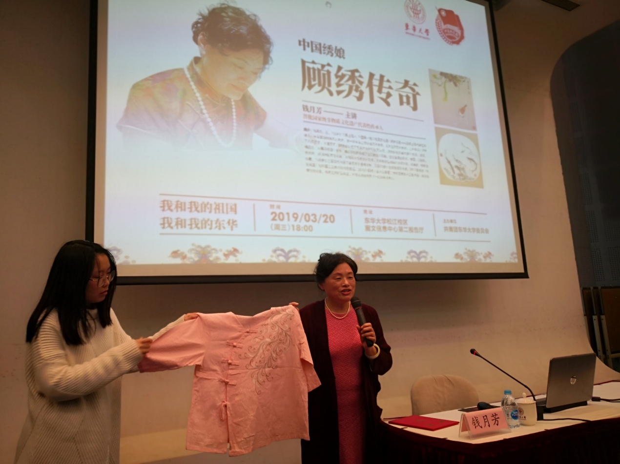 钱月芳是上海松江顾绣研究所副所长,中国刺绣艺术大师,上海工艺美术师,曾获“三八红旗手”荣誉称号。此次讲座活动由校团委承办,近200名师生聆听讲座。