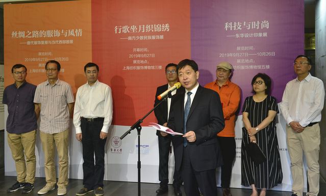 为庆祝新中国成立70周年,9月27日上午,“行歌坐月织锦绣——南方少数民族服饰展”、“丝绸之路的服饰与风情——唐代服饰复原与当代西部图景”和“科技与时尚——东华设计印象展”三大展览在我校上海纺织服饰博物馆开幕。校长、党委副书记俞建勇出席开幕式,出席此次展览的校外领导和嘉宾有新华社上海分社社长姜微,上海市文创办副主任、市经济和信息化委员会副主任阮力,中国服装协会上海办事处主任檀安慈等。上海高校博物馆育人联盟的兄弟高校、我校相关学院、部门负责人和师生代表参加活动。