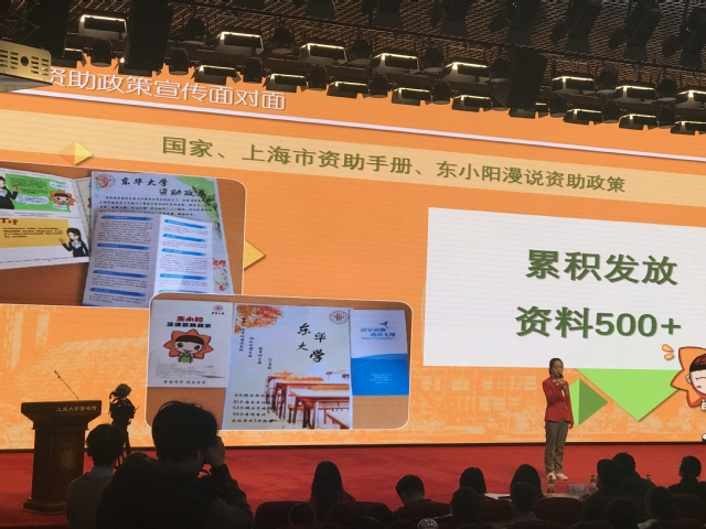 为践行社会主义核心价值观,大力宣传国家资助政策,培养德智体美劳全面发展的社会主义建设者和接班人,今年我校选聘国家奖学金、国家励志奖学金、上海市奖学金以及国家助学金等各类获奖受助学生担任宣传大使,开展了以“砺志乐善•勇担使命”为主题的资助专项暑期社会实践。165名学生资助宣传大使在学校全额资助下,奔向祖国的四面八方,深入农村、深入基层,“现身说法”为资助代言,助贫困学子圆大学梦。