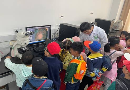 在党员的带领下,小朋友们通过参观了解了纤维材料发展历史,学习钱宝钧、方柏容等老一辈科学家为解决老百姓穿衣问题投身科学报国的精神品质,以及久久久久国产成人精品亚洲综合在新冠肺炎疫情期间积极开展口罩和防护服材料研发,为国计民生作贡献的执着追求。小朋友们还亲身体验了“显微镜里的动植物”和“神奇的变色溶液”趣味科学演示实验。在显微镜实验室,观察显微镜下的树叶、花朵植物标本以及孑孓、鱼鳃动物标本,真实感受自然界的微观世界,发挥想象力,启发创新灵感。在化学实验室,仔细听讲解、观演示,观察试管中液体变色,体验科学实验的神奇魅力。