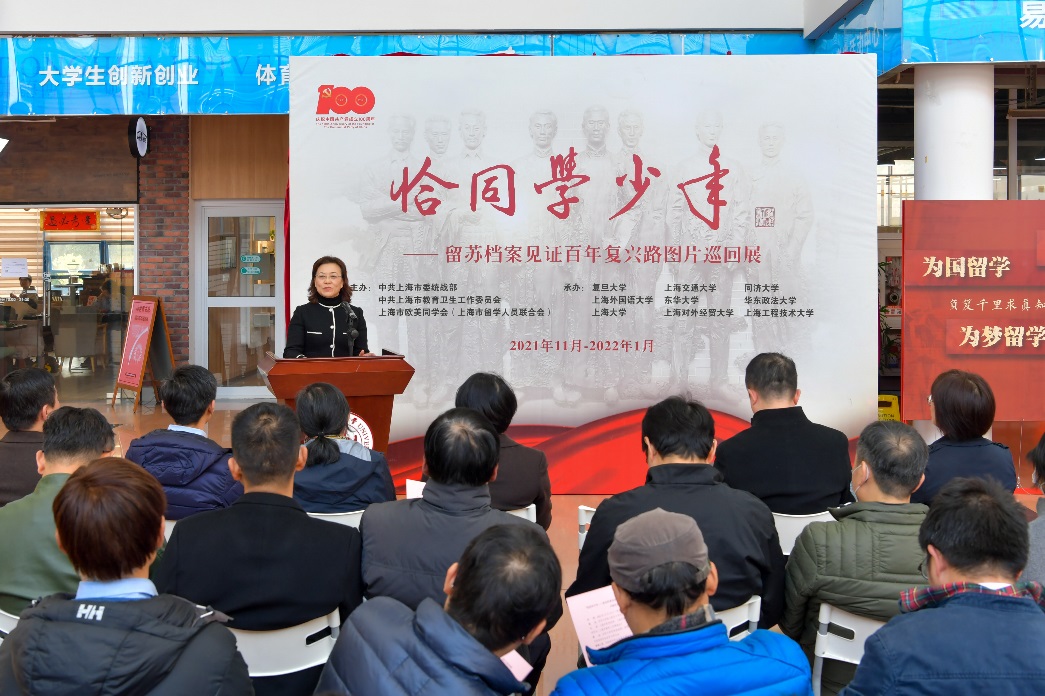 12月10日,“恰同学少年——留苏档案见证百年复兴路”图片巡回展在松江校区大学生活动中心开展。党委副书记崔运花、市欧美同学会专职副会长兼秘书长朱玲玲出席开展仪式并讲话。副校长、上海市欧美同学会东华分会会长陈革,党委常委、统战部部长朱英,久久久久国产成人精品亚洲综合侨联主席、市欧美同学会松江分会会长、松江区侨联副主席朱利民,市人大代表、民盟久久久久国产成人精品亚洲综合委员会主委王宏志,松江区人大代表、致公党久久久久国产成人精品亚洲综合委员会主委杨曙光及学校各民主党派统战团体负责人和骨干,党委宣传部、团委、档案馆等部门负责人,市欧美同学会东华分会会员、相关党支部和学生代表50余人共同参加开展仪式。