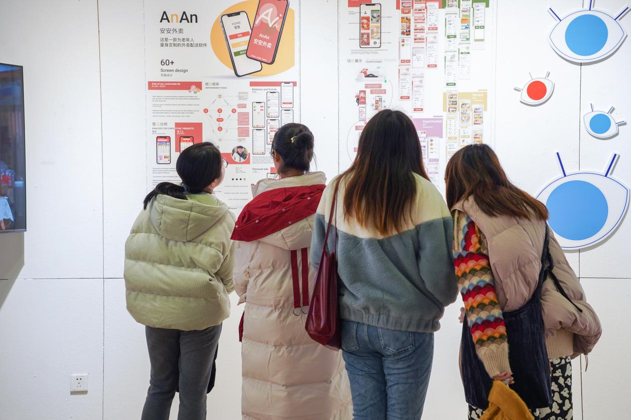 第二部分社会实践及创新创业优秀成果展,展示了学院近三年来的社会实践和创新创业成果。学院团委通过“衣食住行乐”五大板块,展示了近三年优秀实践团队的项目成果,通过各团队的实践vlog、媒体采访报道视频、实际成果产出、暑期社会实践材料汇编等多种形式和不同视角展现学院在社会实践方面融合学科发展、服务人才培养取得的成绩。三年来,学院共组织社会实践项目117支,其中转化为双创比赛项目43个,共获“挑战杯”国家级三等奖1项,“互联网+”上海市银奖2项、铜奖3项,“知行杯”上海市特等奖1项、三等奖4项。经过多年探索,学院围绕非遗传承、城市发展、乡村振兴、可持续环保等方面探索设计介入的新模式,取得了优异成绩。展览最后,青年志愿者协会和科学商店分别展示了特色项目“牵手艺术彩虹,共创美好生活”“非遗工作坊”的特色成果,展现了学院在长宁区探索“环东华”美育志愿服务平台的建设成效。