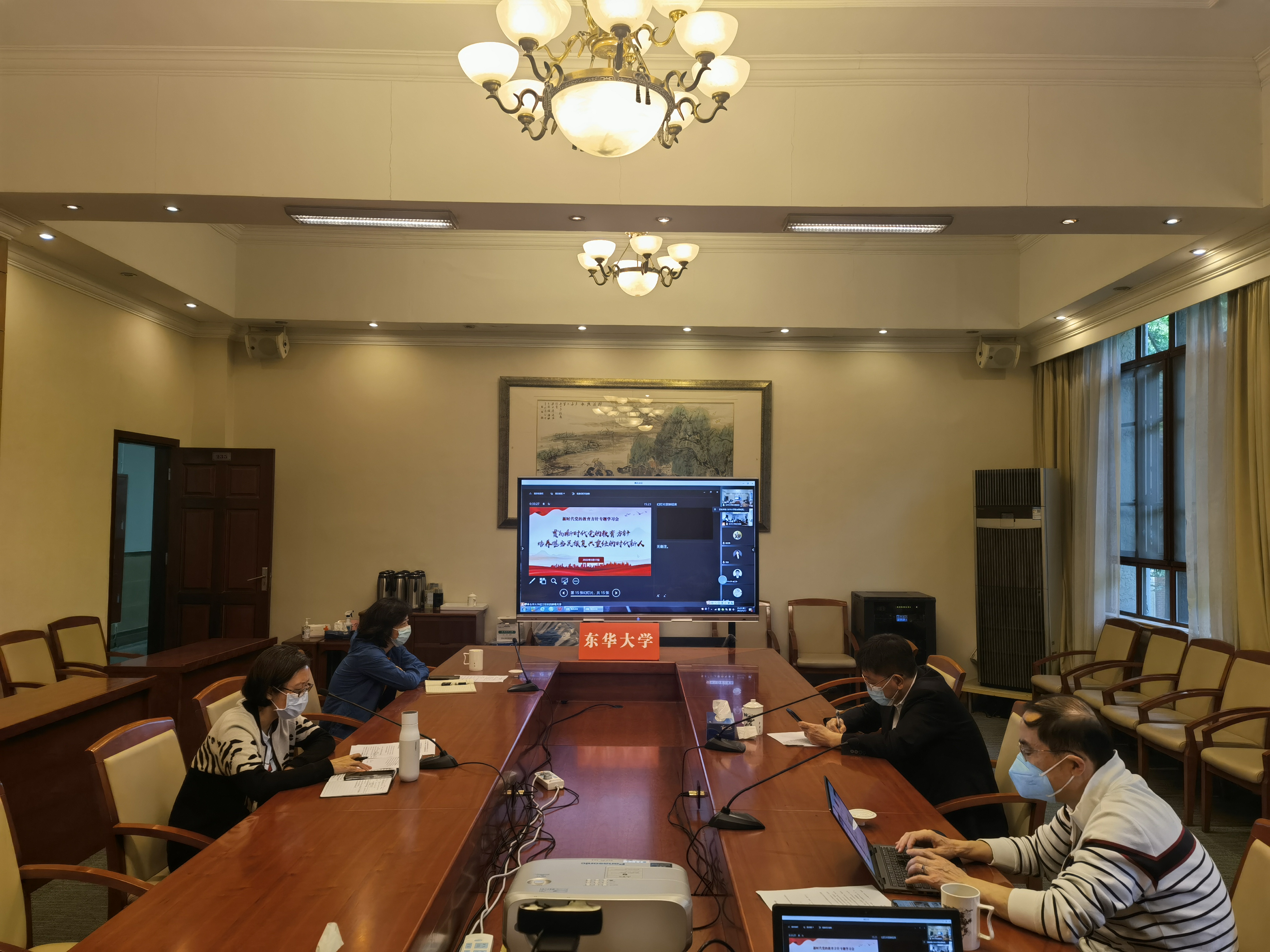 近日,学校党委理论学习中心组(以下简称为“校党委中心组”)通过线上线下融合互动的方式召开新时代党的教育方针专题学习会,结合学习贯彻习近平总书记考察中国人民大学和在庆祝中国共产主义青年团成立100周年大会上的重要讲话精神,就进一步贯彻落实新时代党的教育方针进行再学习再研究再部署。校党委中心组全体成员参加学习。